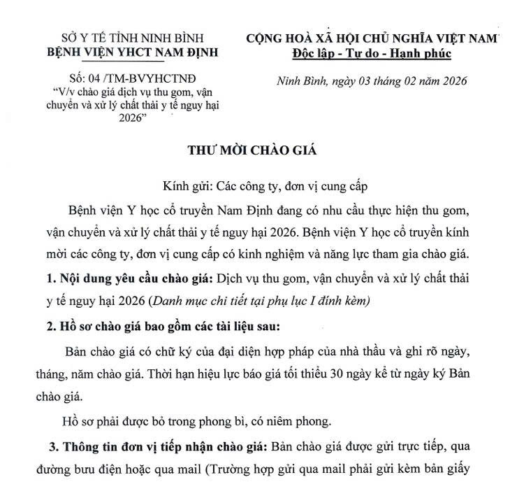 04 TM BVYHCTNĐ chào giá dịch vụ thu gom, vận chuyển và xử lý chất [...]