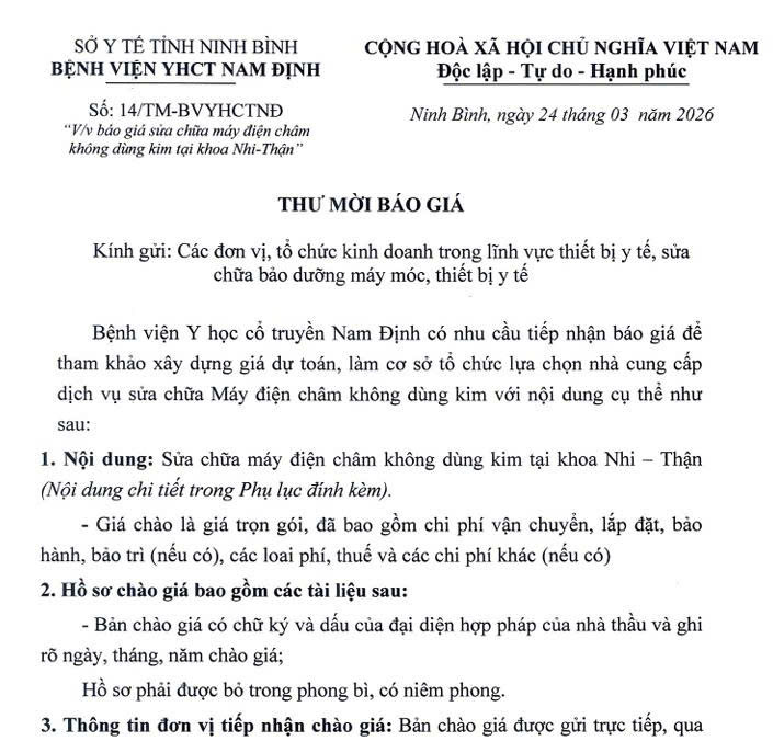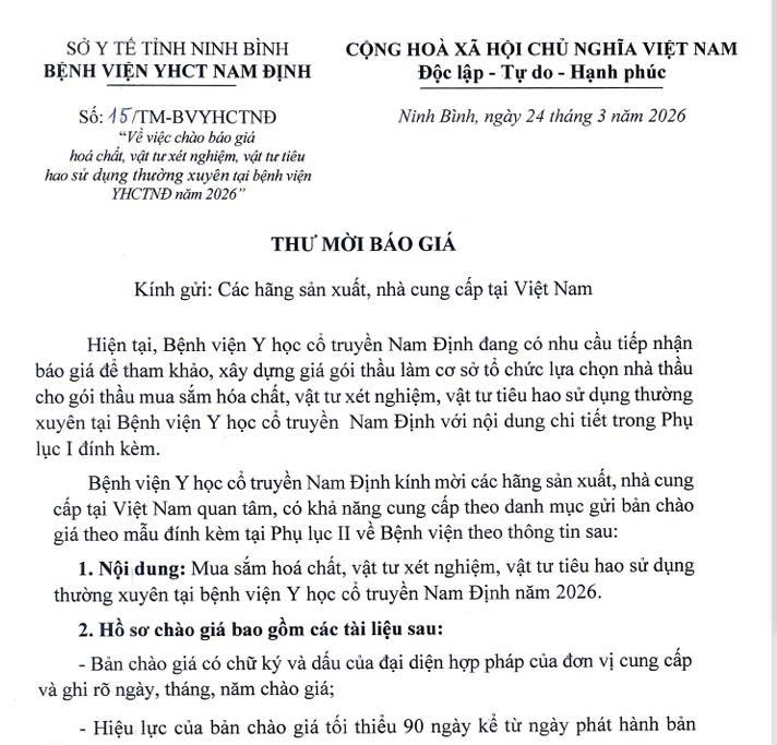 15 Chào báo giá hóa chất, vật tư XN, vật tư tiêu hao sử dụng [...]