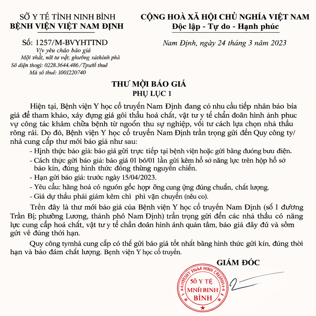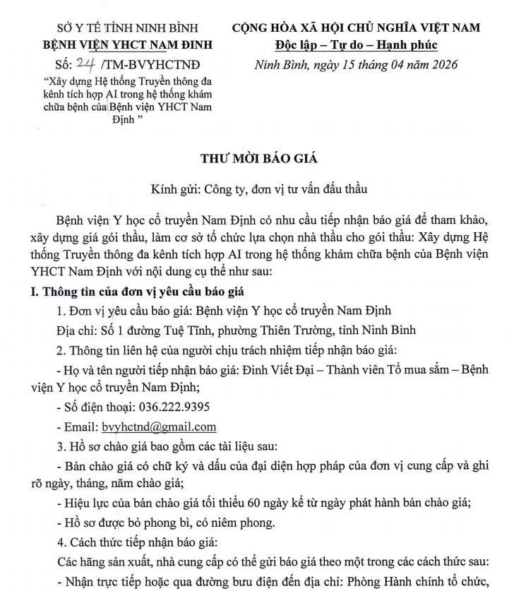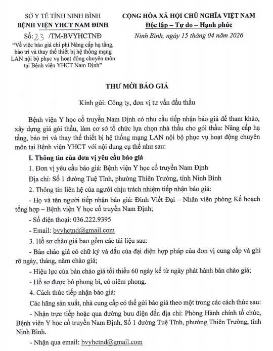 17 chào báo giá hàng hóa, vật tư phục vụ công tác KSNK bệnh viện [...]