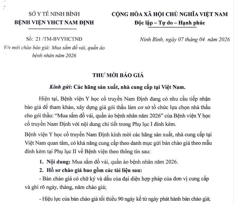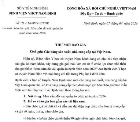 21 thay Mời chào báo giá. mua sắm đồ vải, quần áo bênh nhân năm [...]