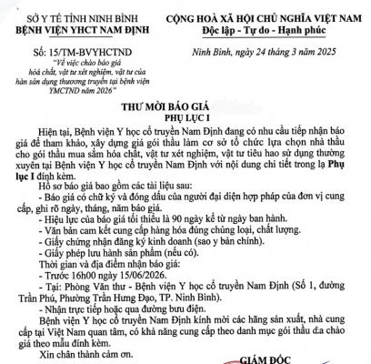 15 Chào báo giá hóa chất, vật tư XN, vật tư tiêu hao sử dụng [...]