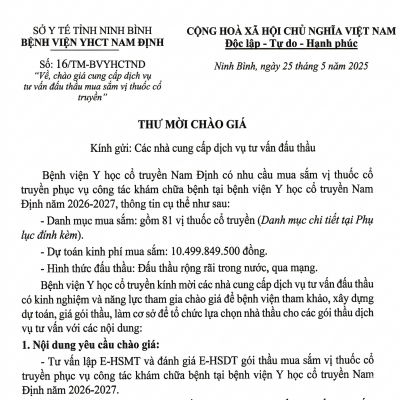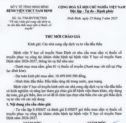16 chào giá cung cấp dịch vụ tư vấn đấu thầu mua sắm vị thuốc [...]