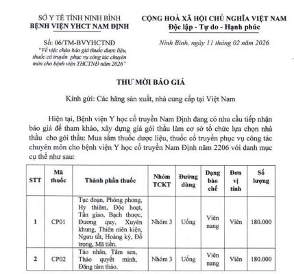 6 thay chào báo giá thuốc dược liệu, thuốc cổ truyền phục vụ công tác [...]