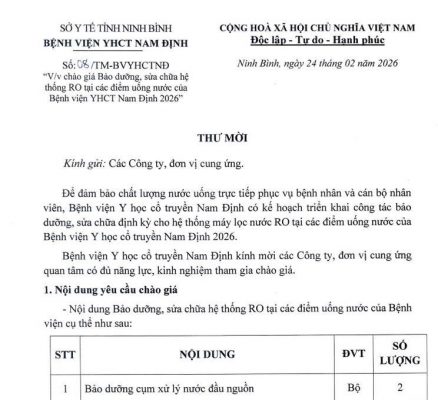 8 chào giá bảo dưỡng, sửa chữa hệ thống ro tại các điểm uống nước [...]