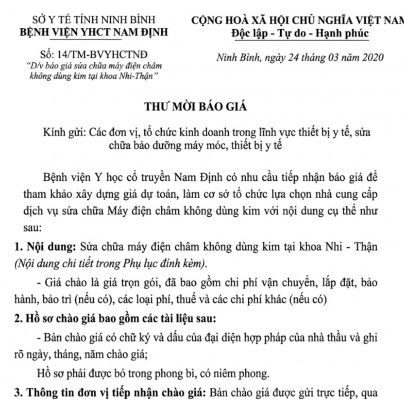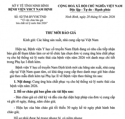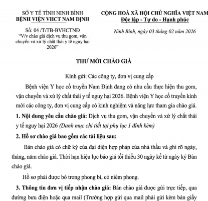 04 TM BVYHCTNĐ chào giá dịch vụ thu gom, vận chuyển và xử lý chất [...]